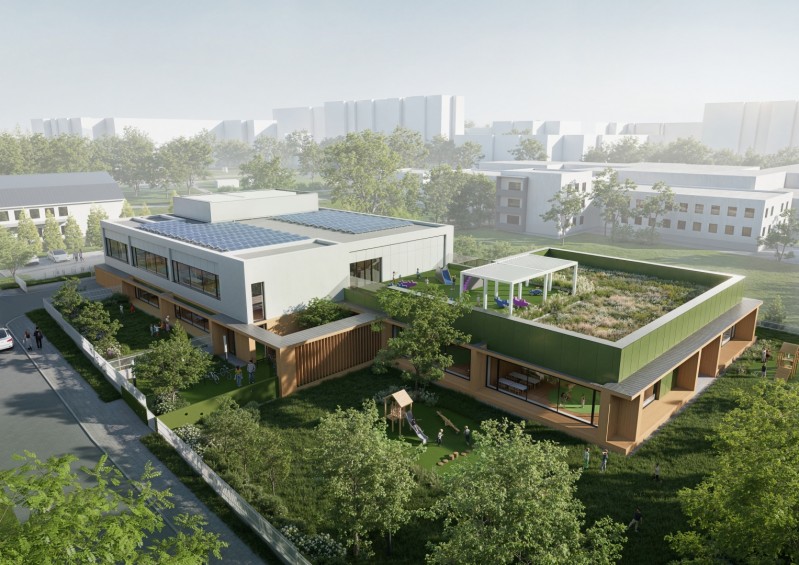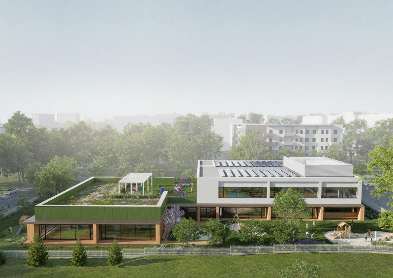 Nowa placówka wyposażona zostanie w rozwiązania przyczyniające się do zredukowania kosztów użytkowania. Zainstalowane zostaną panele fotowoltaiczne oraz dach ekstensywny (zielony) z ekonomiczną i łatwą w utrzymaniu matą rozchodnikową. Obiekt wyposażony będzie ogrzewanie podłogowe, system wody szarej do spłukiwania toalet, bezdotykowe baterie i spłuczki z ograniczeniem zużycia wody. Powierzchnie placów zabaw i chodników wykonane zostaną z nawierzchni przepuszczalnych, aby poprawić retencję wody.