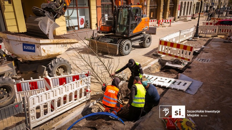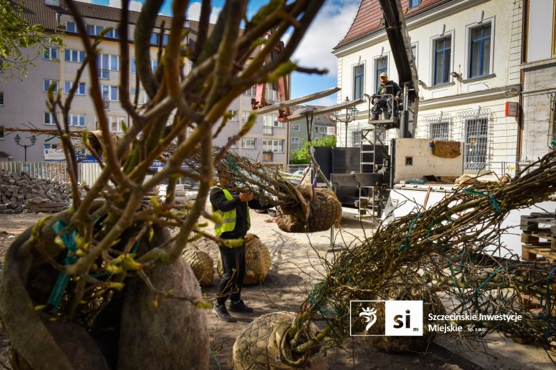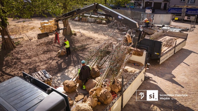 Prace związane z zagospodarowaniem zieleni na placu Orła Białego trwają już od kilku dni. Dzisiaj dotarł transport nowych drzew i od razu ruszył proces ich sadzenia. Część nowych sadzonek trafi do przygotowanych wcześniej zbiorników antykompresyjnych, których zadaniem jest wspieranie rozwoju systemu korzeniowego i poprawienie warunków wzrostu. Równolegle prowadzone są prace związane z nasadzeniami roślin ozdobnych. Nowa roślinność stopniowo wypełnia przygotowane rabaty. Zgodnie z projektem zieleni, w ramach inwestycji na placu Orła Białego zostanie posadzonych: