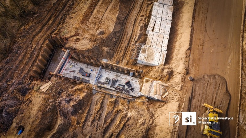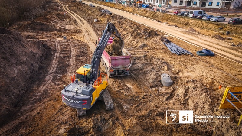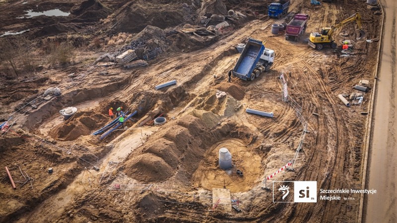 Równolegle trwają roboty konstrukcyjne przy przepustach. Wzdłuż całej trasy widać również zaawansowanie prac instalacyjnych – powstaje kanalizacja deszczowa i sanitarna, sieć wodociągowa oraz system odwodnienia. Towarzyszą temu roboty związane z oświetleniem oraz przebudową infrastruktury teletechnicznej.
