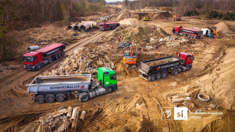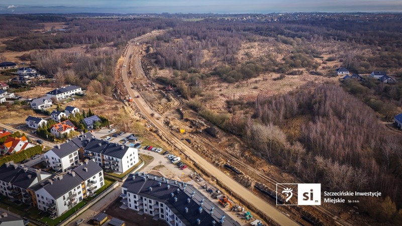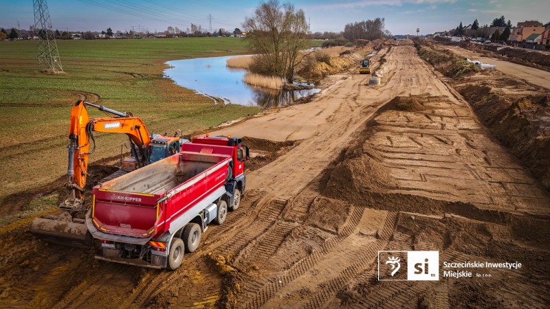 Na budowie Trasy Północnej wyraźnie przyspieszyły prace drogowe. Trwa przygotowanie terenu terenu pod nową jezdnię – wykonywane jest odhumusowanie i wymiana gruntu. Równolegle formowane są nasypy wzdłuż całej trasy oraz wykonywane są kolejne warstwy konstrukcyjne drogi, w tym podbudowy i krawężniki.
